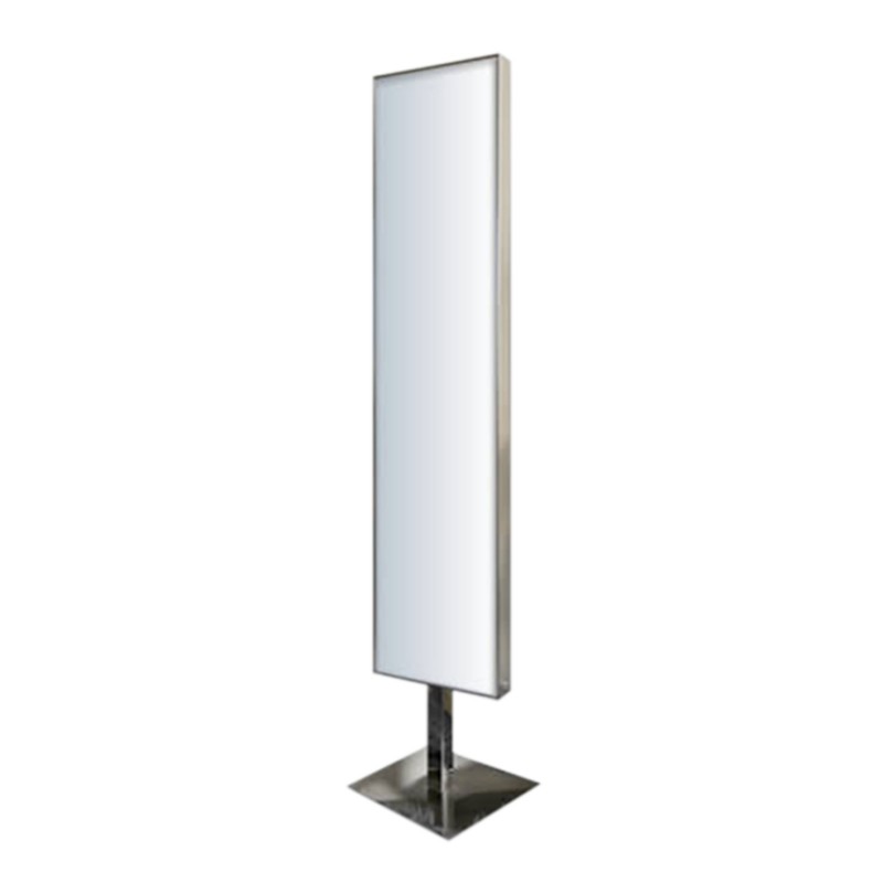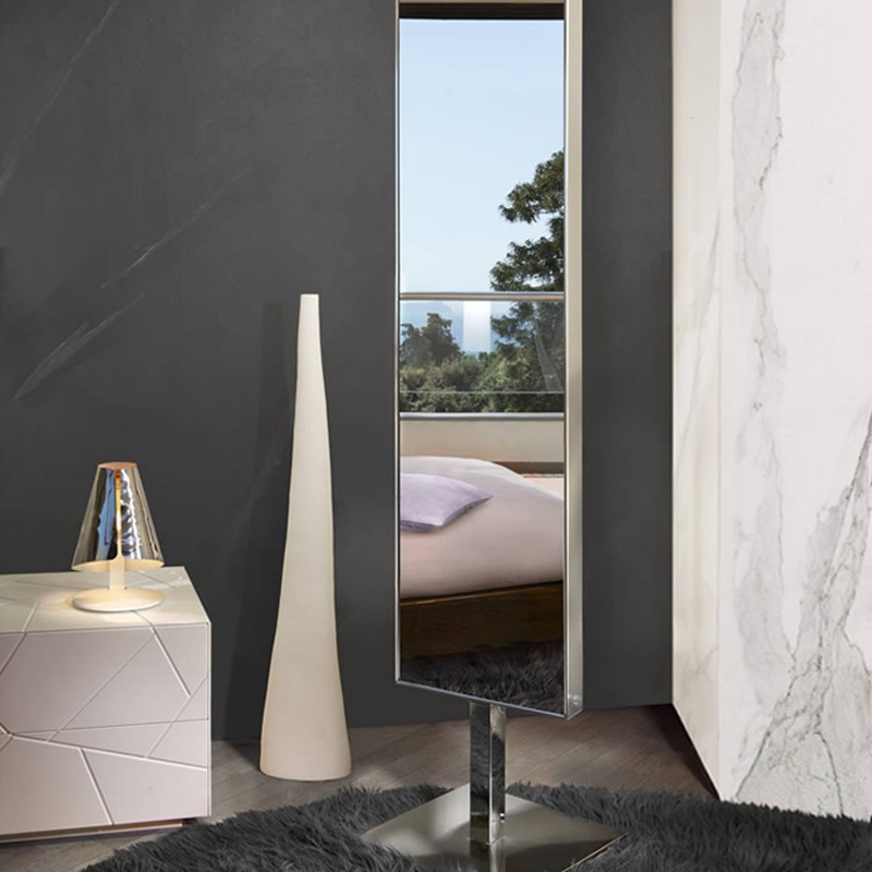 Voilà is a swivel double-sided mirror with base and structure in satin steel.