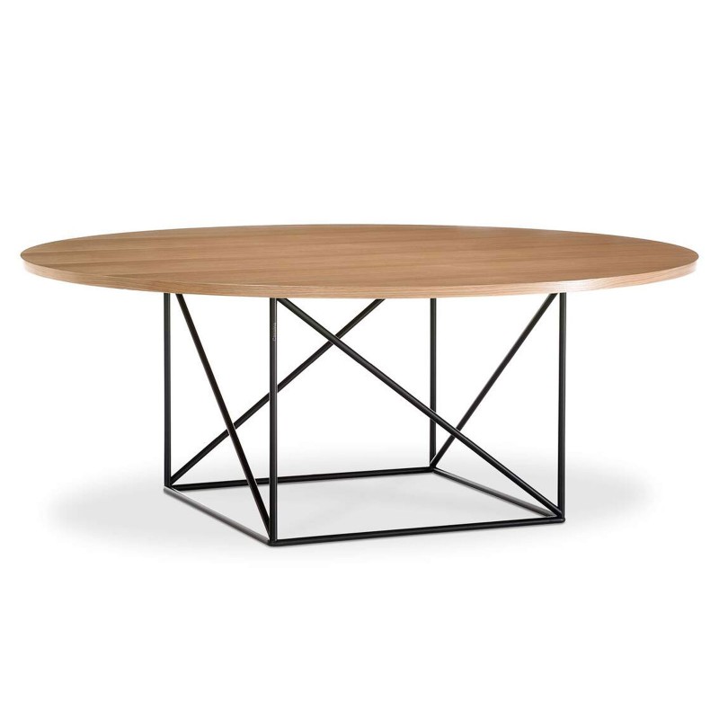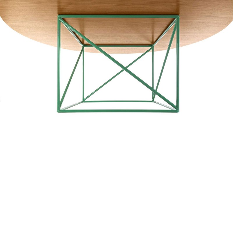 The LC15 table designed by Le Corbusier in 1958 is an icon of modern design, characterized by a perfect balance between organicity and rationality. Reissued by Cassina, the LC15 table has a round top in natural oak, black-stained oak, or Canaletto walnut resting on a sculptural steel truss base painted in LC colors (semi-gloss gray, green, or black). Thanks to its essential and dynamic style, the LC15 is suitable for both refined domestic environments and conference rooms, comfortably seating up to 10 people.