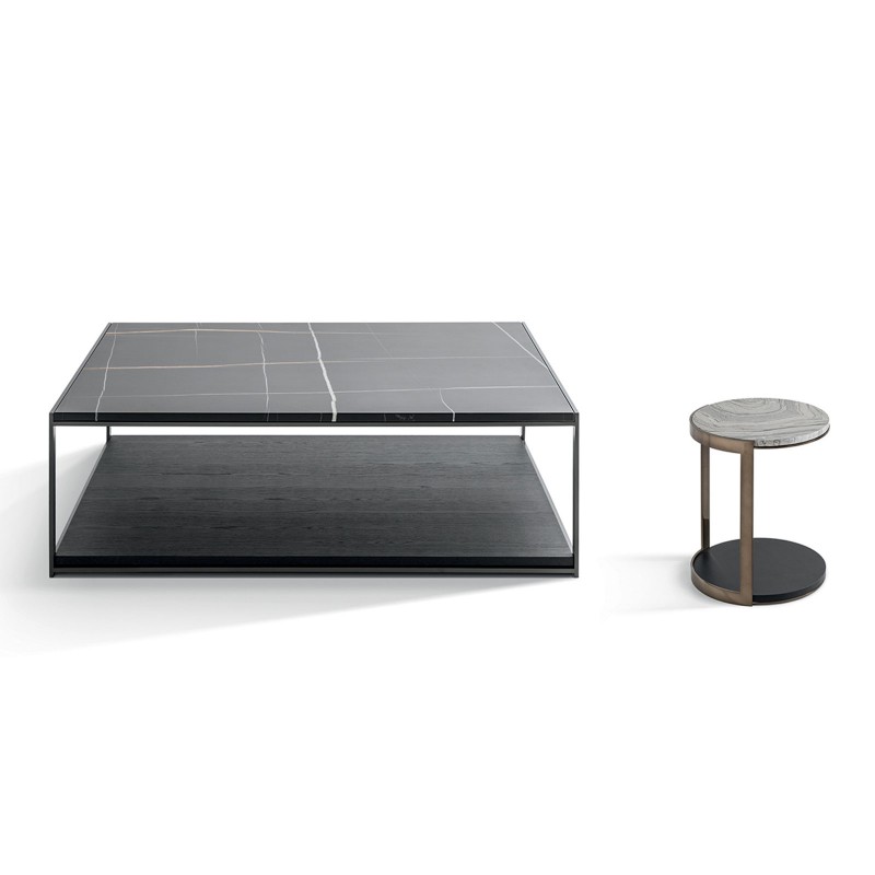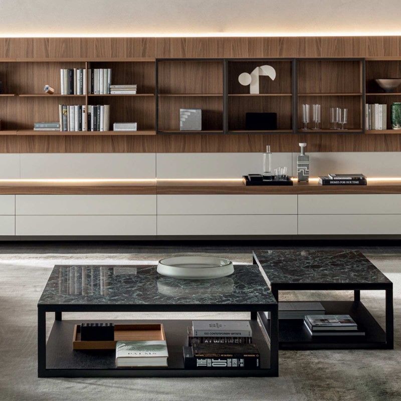 The Alisee coffee table collection by Molteni&C was born from Matteo Nunziati's rational vision and minimalist style. Alisee is proposed as a system of accessories with aesthetic rigor to be adapted in various rooms of the house. Rectangular, square or round, Alisee is a coffee table with a refined character marked by the play of solids and voids, the solidity of the top and the slender metal supports.