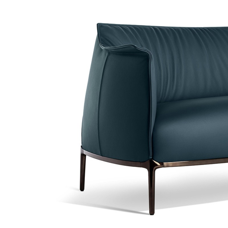 Now a timeless icon of Poltrona Frau, Archibald is the series of armchairs and sofas designed by Jean Marie Massaud in 2009, which continues to evolve alongside contemporary living habits. A perfect blend of form and substance, Archibald is comfortable and enveloping, where opposites—the width and depth of the seat and the slender legs—harmonize. The lightweight base makes Archibald slender and elegant, while the ripples of the leather visible on the backrest have become the hallmark of this modern icon by Poltrona Frau. The exquisite stitching along the edges and on the external surfaces of the upholstery make Archibald a tailored sofa of exclusive elegance.