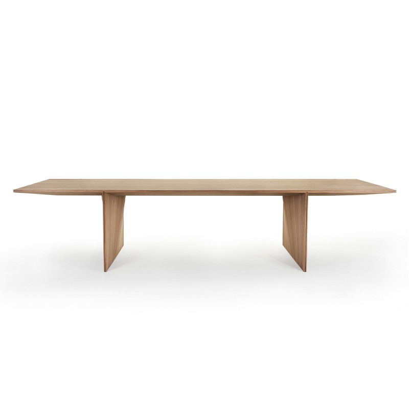 Ava table by Molteni & C design by Foster + Partners is a dining table conceived entirely in wood. A complement for the living area with a sophisticated material effect of wood, used sparingly to create a sustainable modular solution. Sustainability is, on the other hand, the vision that guides the architecture study, aimed at satisfying the needs of those who live in the house with attention to the environment. Ava is inspired by construction and engineering works, drawing inspiration from the light shapes of aircraft wings and bridges. The table consists of two main segments: a middle section and an end. Sculptural and minimal at the same time, Ava by Molteni & C foresees the junctions between the two sections accentuated by a shadow escape that recalls architectural traditions.
