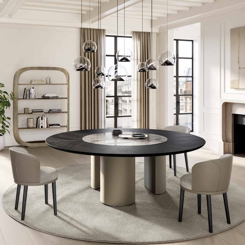 Cherry is Eforma's pendant lamp, designed to enhance the dining area and add elegance to the room. Cherry has an elegant presence, thanks to its design involving one or more painted metal cones inserted inside a transparent sphere. A mix of materials, metal and borosilicate glass, where the former is the precious core guarded by a light crystal cap that gives depth and highlights the glare of light. Cherry's various compositions allow it to adapt to various table sizes.