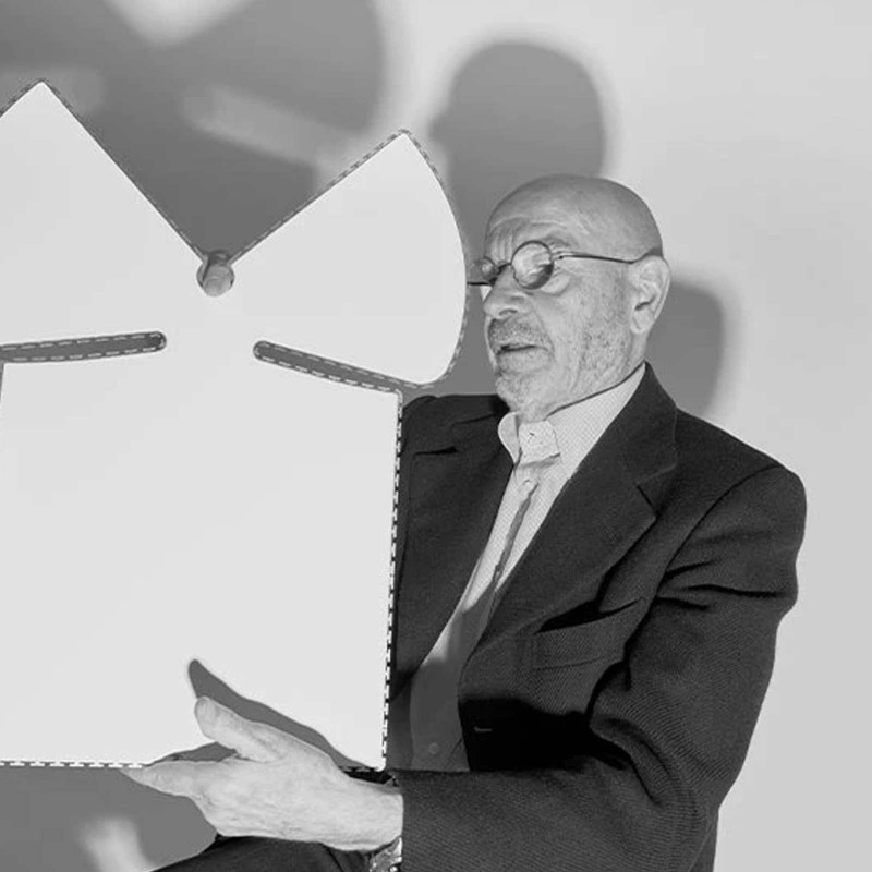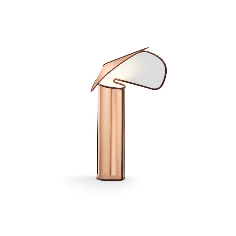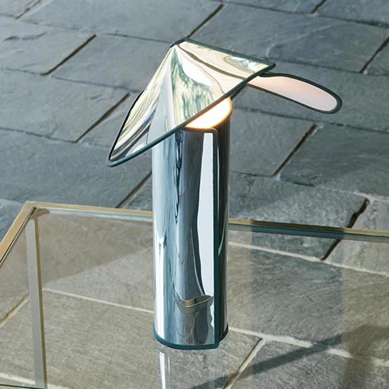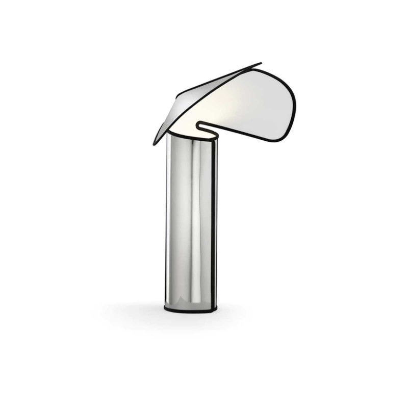 Fifty years ago Mario Bellini designed the Chiara floor lamp for Flos. Today the anniversary is celebrated with a new edition and new variations. Among these is the table version: a single sheet folded on itself like a stainless steel shawl. The light source is not known and the reason, indicated in the designer's book "The designer explained to children", lies in the fact that Bellini does not appreciate lamps that show light bulbs because they annoy the eyes.