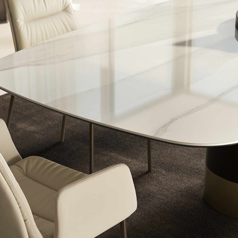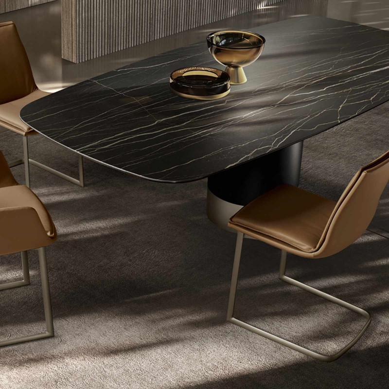 Cilindro is a table characterized by a two-tone metal base with a 16 mm thick ceramic top. 10 mm thick tempered glass, coupled with 6 mm thick ceramic. Cilindro is perfect for furnishing with a contemporary and luxury style.