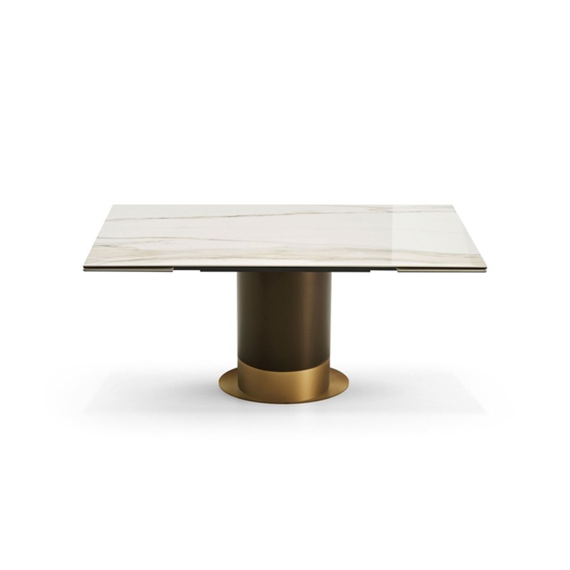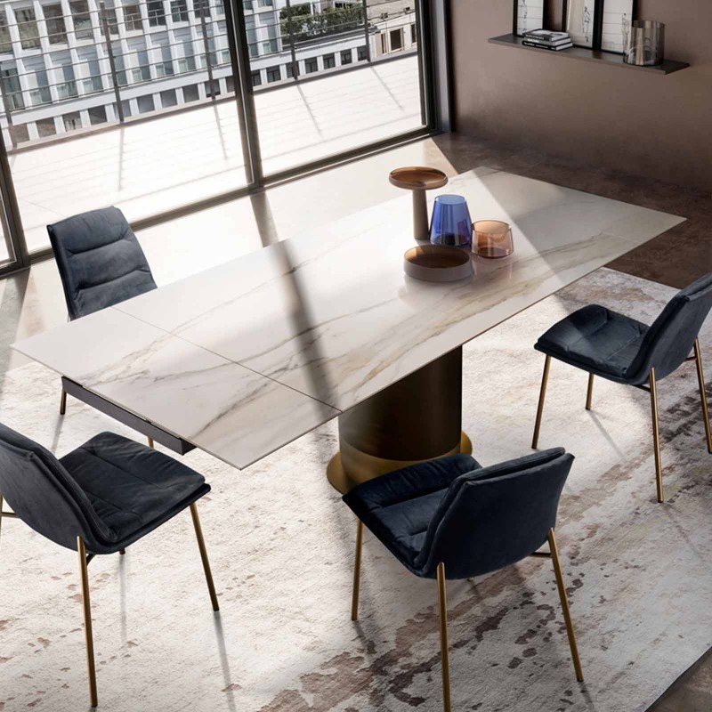 Cilindro is an extendible table characterized by a two-tone metal base with a 16 mm thick ceramic top. 10 mm thick tempered glass, coupled with 6 mm thick ceramic. Cilindro is perfect for furnishing with a contemporary and luxury style.