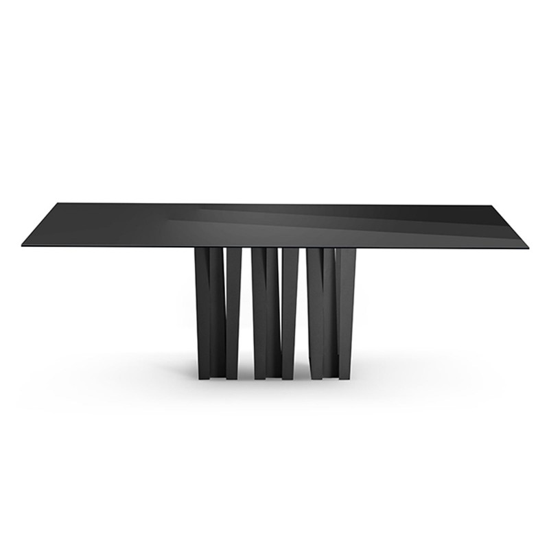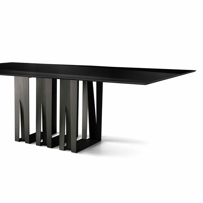 The Narciso table by Eforma is characterized by a sculptural and decorative metal base available in various finishes and 12 mm thick black painted glass top. The 240x120, 300x120 and 320 x130 tops have a thickness of 15 mm. Narciso is perfect for a dining area with character, with a luxury spirit.