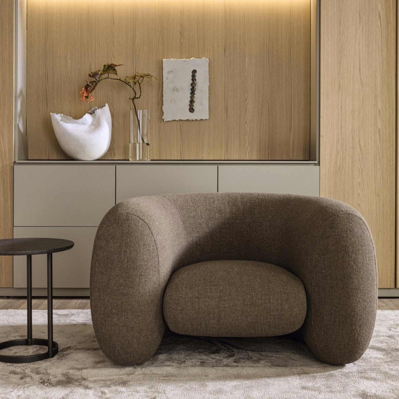 Cinnamon is the new 2023 armchair by Molteni&C which marks the first collaboration of the Italian brand with the Japanese designer Naoto Fukasawa. A perfect marriage between function and form, Cinnamon evokes absolute comfort thanks to the seat characterized by the U-shaped line and the strong and soft thicknesses. A comfortable armchair, where all the details are balanced by giving harmony to the sinuous curves, and versatile: Cinnamon furnishes a living room as well as a bedroom, a study or a hotel hall.