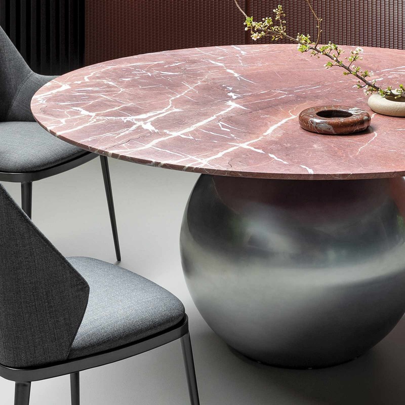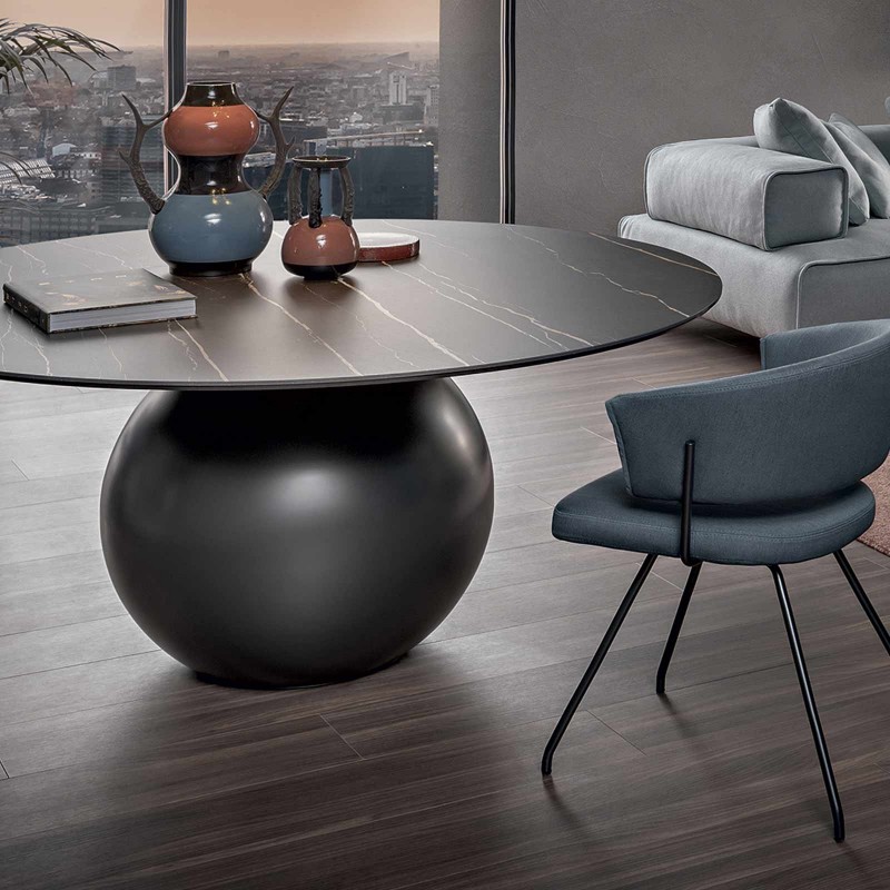 The Circus table by Bonaldo celebrates geometry by stripping it of the rigor we are used to. A spherical central base enhanced by the multiplicity of available finishes supports a thin disc top that can adapt to various areas of taste depending on the chosen material: wood for a warmer flavor, marble for an eternal and sophisticated effect, ceramic for not giving up on elegance and practicality.