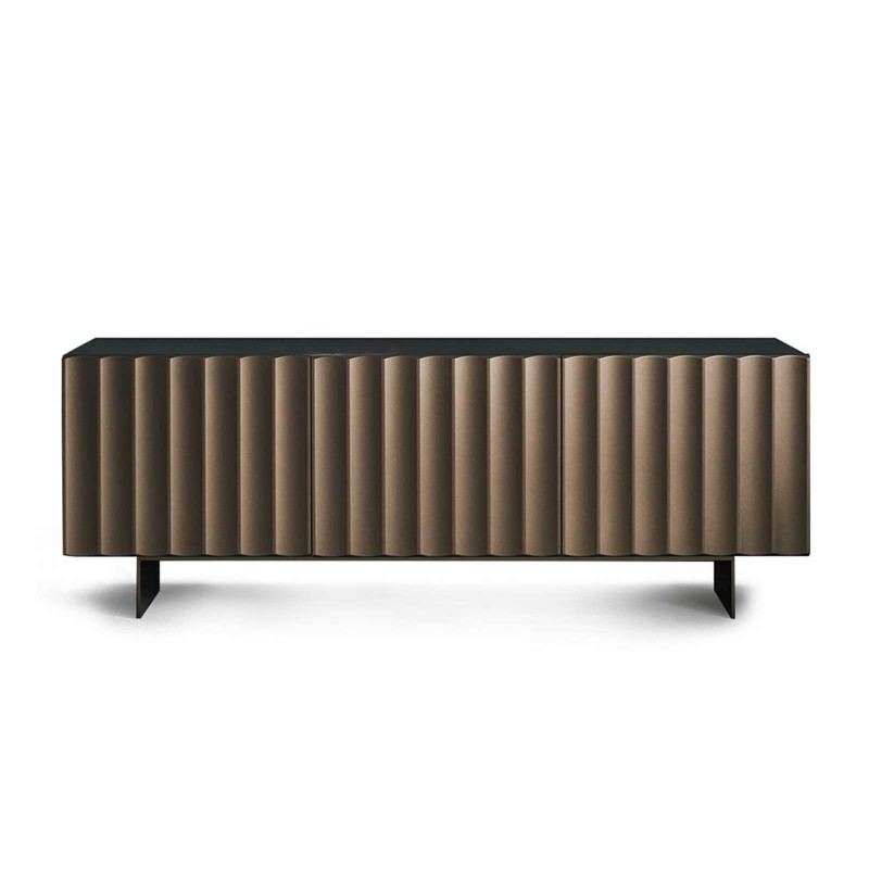 The Dorian sideboard by Bonaldo is a novelty of the Salone del Mobile 2022 in Milan. A distinctive feature of this storage unit is the presence of vertical decorations that mark the surface of the doors, giving Dorian a sophisticated aesthetic touch. The structure and doors are in wood, while the base, with plinth or blade foot, is in metal. The available sizes are: L 138 cm or L 208 cm. Dorian can be in three versions of finishes: