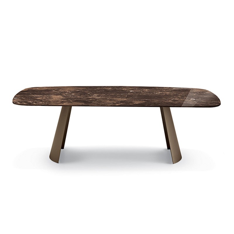 Dorian is the Eforma table with a metal base and a glossy rectangular or shaped marble top with oblique edges 20 mm thick. Dorian is characterized by a light and at the same time sculptural base. A perfect table to furnish the dining area or executive offices.