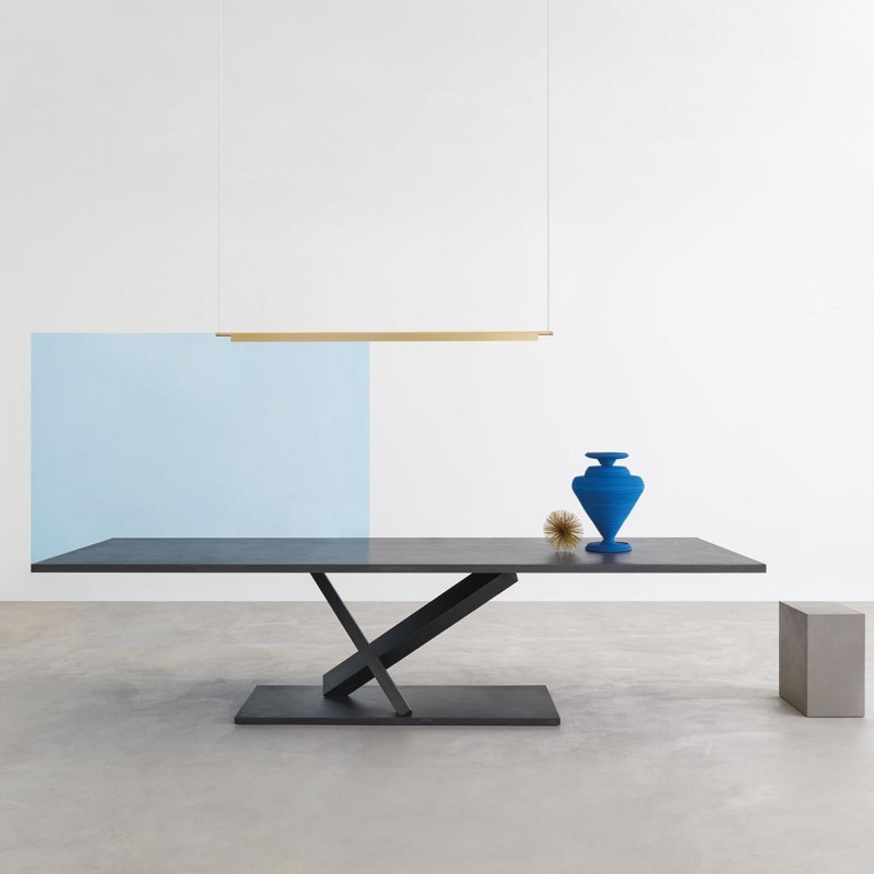 Element by Desalto is a conceptual table designed by the designer Tokujn Yoshioka. Seemingly simple, Element is a complex expression of Desalto's expertise in metalworking. The central support is proposed as a component that places the plan and the base in dialogue, albeit in the balance. The result is a table, rectangular or square, with a formal synthesis that can be declined in various finishes.