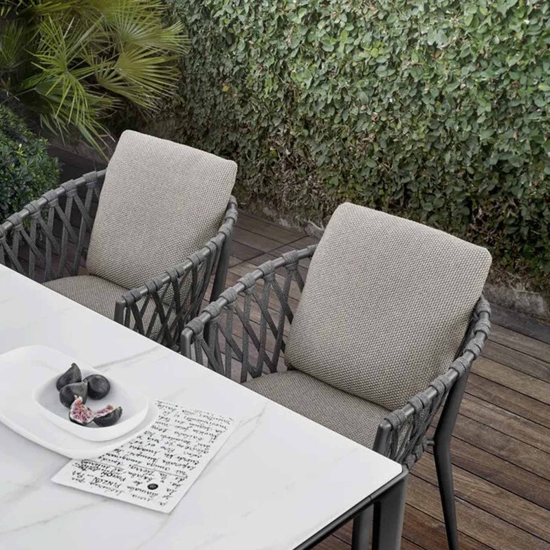 Erica is the chair proposed for the outdoor by B&B Italia from a design by Antonio Citterio. Also available in a stackable version, Erica is the result of a technological mix of extruded and die-cast aluminum. A chair with a contemporary design that guarantees comfort and ergonomics, suitable for both residential and contract environments. The structure is painted available in various finishes combined with woven synthetic fabric ribbons.