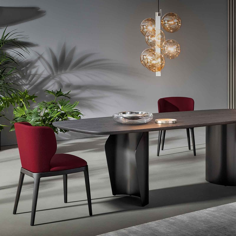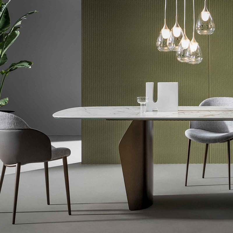 The Flame table by Bonaldo is characterized by the sinuous shapes of the double base opposed to the lightness of the top. Functionality linked with aesthetics: Gino Carollo has conceived for the brand a piece of furniture, the protagonist of the living area, where the footprint is reduced to allow the comfort of diners and where the variety of materials allows you to make Flame unique for your style furnishing.