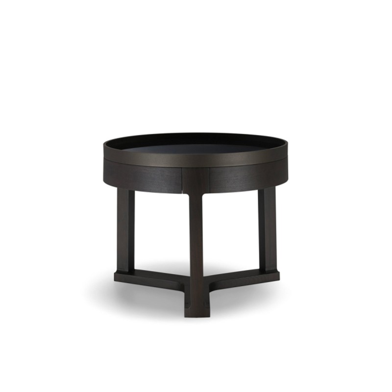 Fonte is the new series of coffee tables by Molteni&C, news for 2024, characterized by a circular top and a structure made up of three vertical elements in solid wood. The top can be configured in various finishes, including marble, wood and black back-painted glass. Fonte is lightness and sculptural solidity at the same time: a furnishing accessory that adapts to various environments such as the living room, the lounge area and the bedroom. For the bedroom, a bedside table version is available, enriched by a bedside table placed under the top and a sophisticated upper ring with an elegant burnished effect paint finish.