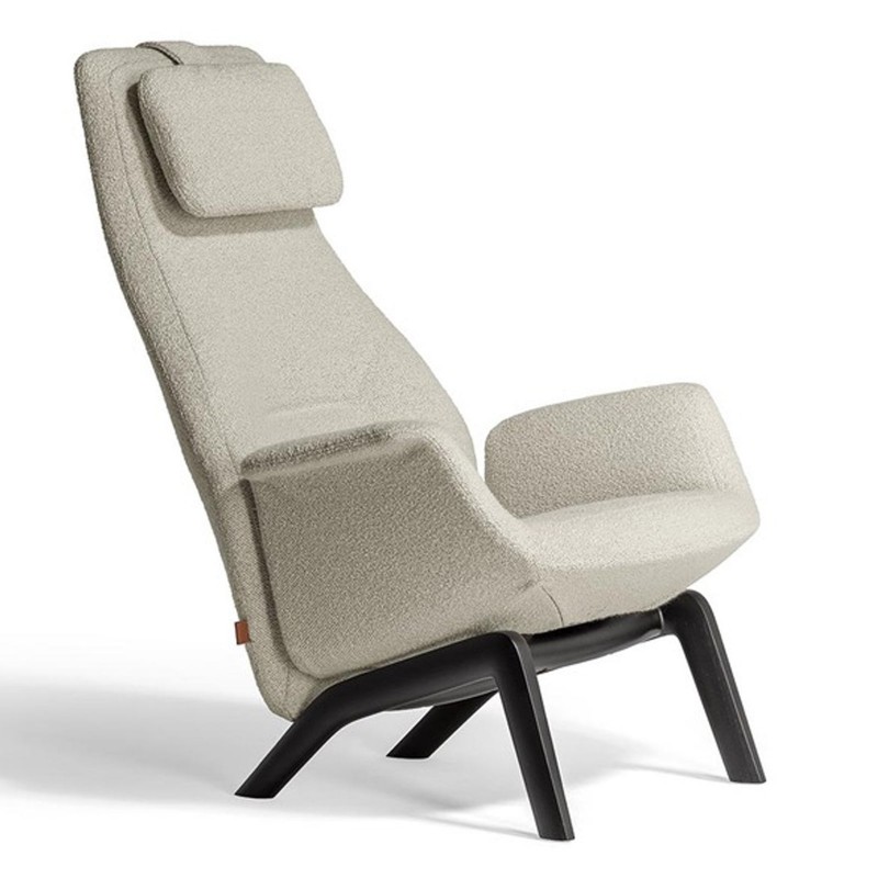 Downtown Lounge is the relaxation-oriented declination of the Downtown office chair designed by Jean-Marie Massaud for Poltrona Frau. Among the 2025 novelties, the armchair originally conceived for workspaces lands in the residential world with revised ergonomics: the backrest is slightly inclined to encourage natural and comfortable posture by providing full support up to the head. Downtown Lounge is appreciated not only because it is an invitation to relax, but also for its refined aesthetics, enriched in its finishes: the base is now available in wood, the perfect material to enhance warmth and coziness.
