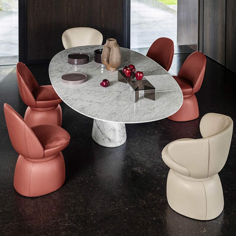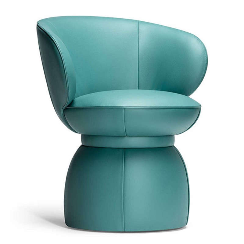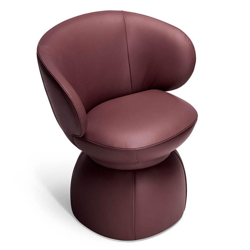 Leplì is the new 2025 collection of chairs by Poltrona Frau designed by Kensaku Oshiro, who wanted to blend the brand's sartorial workmanship with couture suggestions. What distinguishes these chairs and armchairs with a romantic allure are, in fact, the classic stitching and soft pleats, which enhance the cozy shapes of Leplì, which seems to fall just like a dress on feminine curves. The horizontal band located between the seat and the base is a symbolic reference to a belt that highlights the waist. Leplì is a complement that stands out for its grace and discretion, where every detail is calibrated to the millimeter and every proportion studied in detail. The upholstery can be single or double: you can choose one finish for the inside and one for the outside. Available with fixed or swivel mechanism with return mechanism.