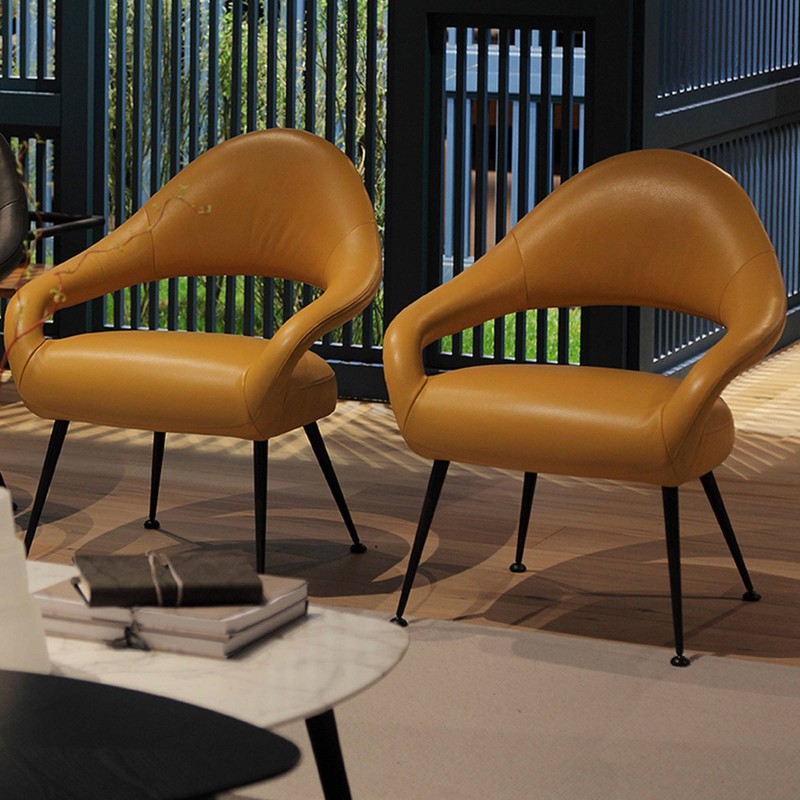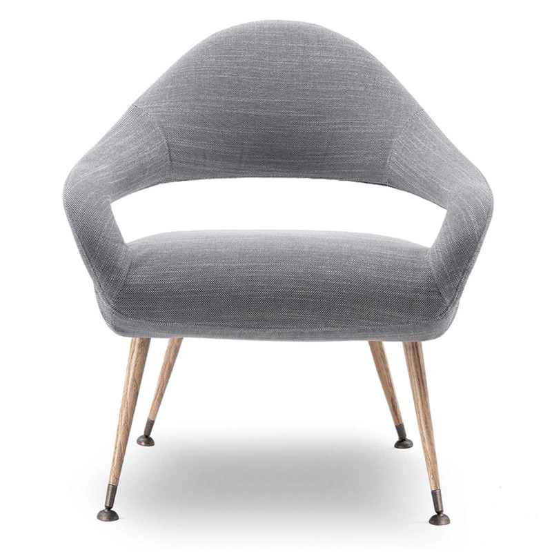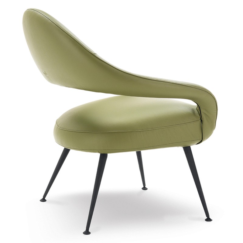 Mid-century charm for the Letizia armchair designed by Gastone Rinaldi in 1954 as DU55P and reissued by Poltrona Frau. Letizia is elegant and sums up the creative ferments of a serene era. Letizia is a cozy seat, characterized by sinuous curves and an interplay of solids and voids. An armchair with a retro allure that gives rooms grace and sophisticated lightness.