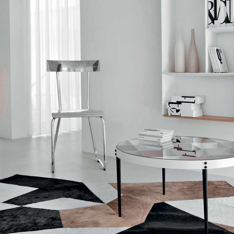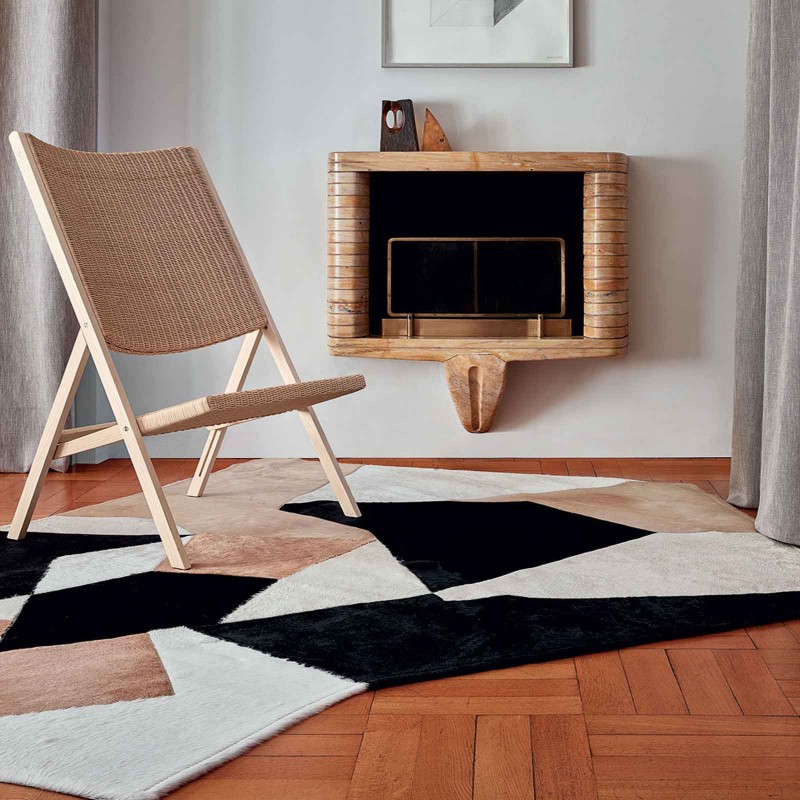 The carpet D.754.4 is a project by Gio Ponti from 1956, re-edited by Molteni & C to celebrate the master in the Heritage Collection in collaboration with the Gio Ponti Archives. An impactful complement, the rug is made of pony skin in a patchwork of various colors and enriches the Gio Ponti Collection.