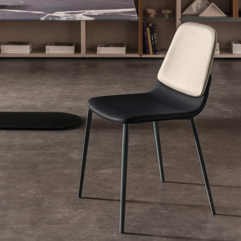 Mix and match and sinuous lines are the words that best describe the Ermes chair by Lago. In the name of compositional freedom, Ermes can be customized by combining the fabrics and leathers of the seat and backrest. The choice is yours to play with the color contrasts or keep the tone on tone according to your style! The metal structure is light and in a sophisticated graphite color; while the ergonomic seat and backrest are padded for maximum comfort.