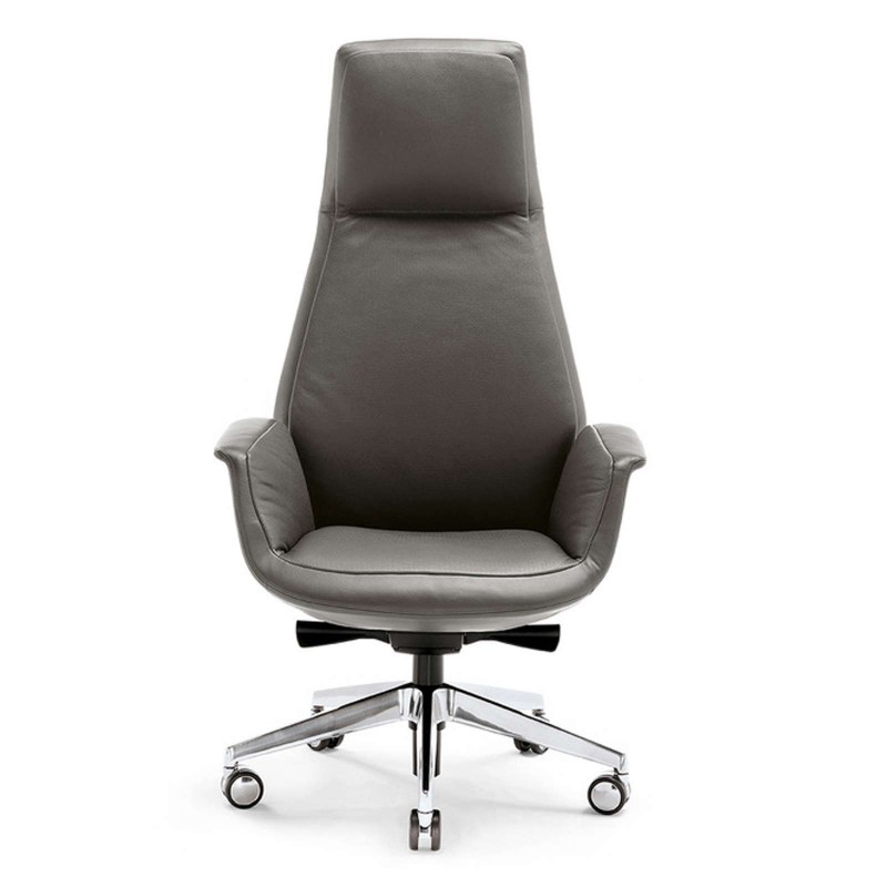 The Downtown by Poltrona Frau is an office chair that combines ergonomics, comfort, and timeless design, designed for those who want an elegant and highly functional executive chair. Ideal for managerial and professional environments, it is designed to ensure maximum comfort during prolonged use. The collection is available in President, Executive, Managerial, and Meeting versions, designed for different operational and representative needs. The upholstery is made of fine Pelle Frau® leather, embellished with tone-on-tone or contrasting stitching; a version with micro-perforations on the inside of the seat, backrest, armrests, and cushion is also available for greater breathability.