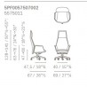 The five-star base in polished or black painted aluminum is equipped with self-braking “W” swivel casters, suitable for all types of flooring. The chair is height-adjustable and swivels via a lever under the seat. The President, Executive, and Managerial versions feature the Syncron mechanism, which coordinates the movement of the seat and backrest to follow the body's posture and offers four locking positions.