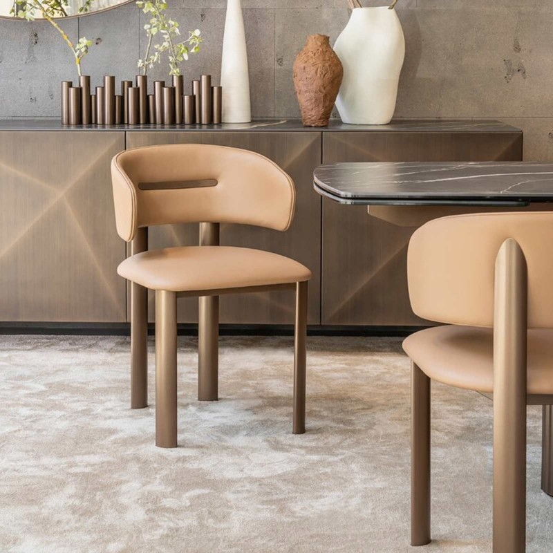 Velvet is the new chair by Riflessi presented at Fuorisalone 2025 that stands out for its curved back and welcoming solid legs in painted metal. The detail of the steel insert creates a continuity effect with the chair structure. The seat as well as the backrest can be customized in Riflessi's wide range of fabrics. Velvet is the epitome of elegance, ideal for those who wish to give their dining room or dining nook a touch of luxury chic.