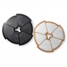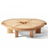 The Rio coffee table by Charlotte Perriand, reissued by Cassina, was originally designed in two different sizes, but is now available in only one size. Designed in 1962, the Rio coffee table is a truly distinctive piece: spherical in shape, divided into six segments of different radii, placed side by side but offset, creating an articulated solid wood outer edge and a central hole designed as a spatial center of gravity. Today, the Rio coffee table is skillfully produced by Cassina's artisans in Meda. The table has a wooden structure, available in two finishes, natural oak and black-stained oak. The natural oak structure is paired with a top covered in Vienna straw or white Carrara marble; the black-stained oak is paired with precious Marquina marble.