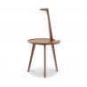 Cicognino by Cassina is a design by Franco Albini dating back to 1953. An emblem of playful design, Cicognino is also a symbol of a design philosophy aimed at simplification: the structure has three slender supporting legs, and the circular top with a diameter of 40 cm has a wooden rim that frames it like a tray. The unique feature of Cicognino is that one of the legs is twice as long as the others, becoming a practical handle that allows the table to be moved easily. The shape of this dual-function leg evokes the profile of a small stork.