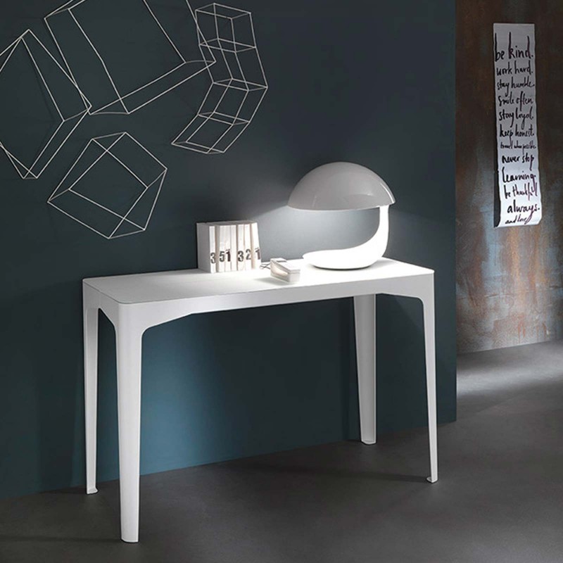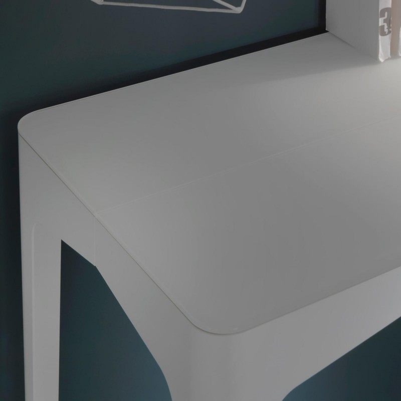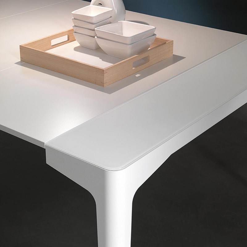 This stylish convertible table can be easily transformed from a console table into a full size dining table due to its clever extension mechanism. This extendable table has a wood frame with a scratch resistant frosted glass top and wooden extension leaves which can be easily stored away in the special storage bag.