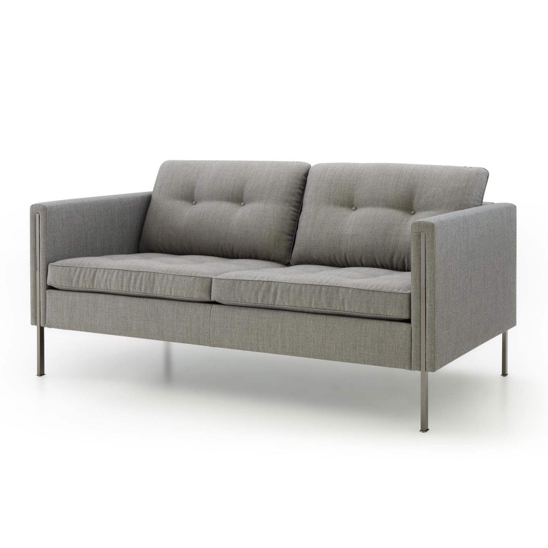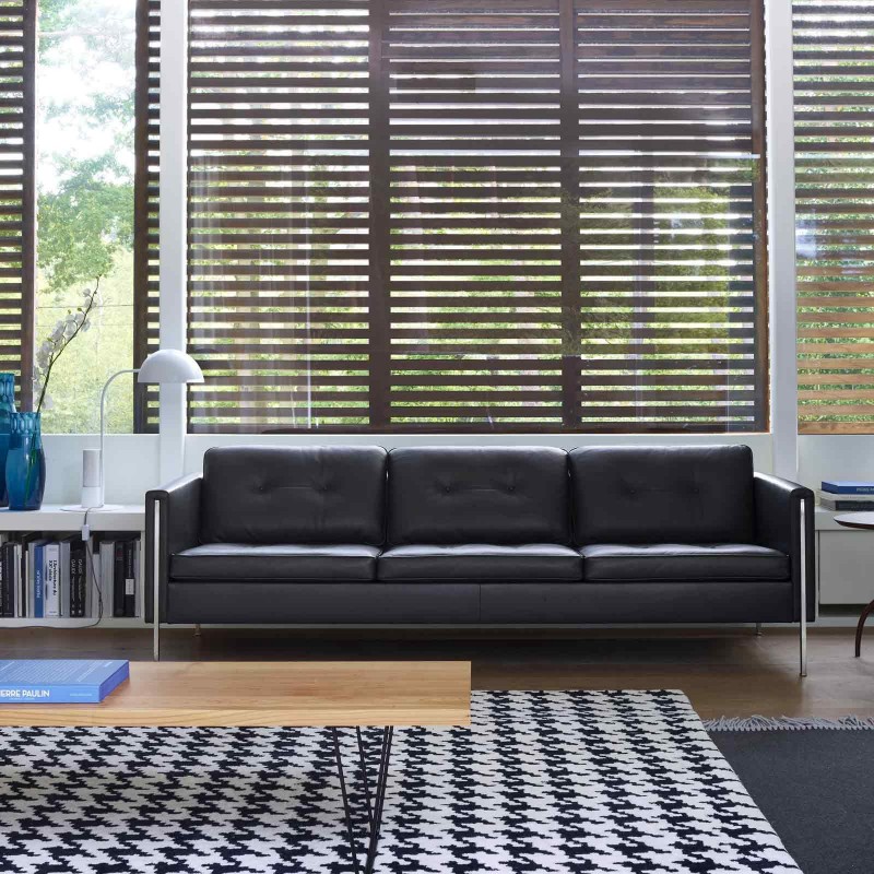 The Andy sofa by Ligne Roset design by Pierre Paulin is a tribute to the Florence Knoll sofa from 1954. A lighter version in the stitching and rigor of the lines, Andy is an upholstered piece of furniture with a refined and comfortable mood. The steel feet become an elegant detail that runs along with the armrests.