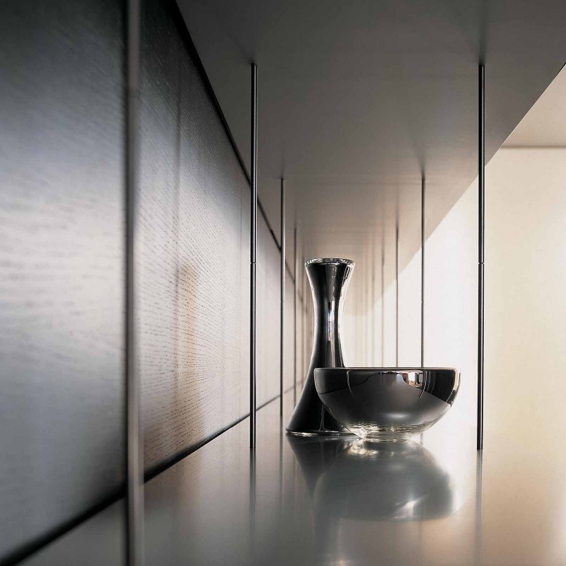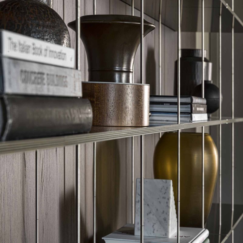 Graduate by Molteni & C is a bookcase designed by Jean Nouvel. Synonimous of essentiality, Graduate is a suspended solution whose fulcrum is in the shelf with an important thickness anchored to the wall or ceiling and in the system of steel tie rods equipped with notches marked with numbers to be able to fix the shelves, guaranteeing weight distribution throughout the 'furniture. Nouvel's concept is precisely to create a modular hanging bookcase with a technological soul: the shelves are in plywood coupled with an external coating in natural or black anodized aluminum.