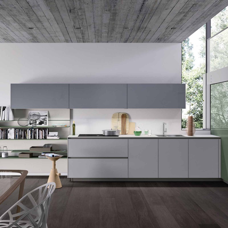 With M_urano glass is the protagonist: a pure material, versatile and unalterable . Blended with distinctive elements of wood, takes on a double valenzs: rigorous and minimal, but also domestic and reassuring. The result is the harmonious combination of technical elements with metric atmospheres, due to the presence of wood. The new counter Meson's, superimposed or approached the glass kitchen , is a reminder of the memory of gestures and habits of traditional cuisine, in a context of extreme efficiency and formal rigor.
