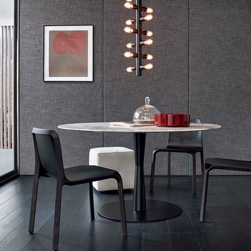 The Flute table by Poliform is a round table designed by Roberto Barbieri in 2009, characterized by thin and clean shapes. The Flute table is very versatile and adapts perfectly to any environment. The top is available in many finishes of polished or polished marble, matt lacquer, glossy lacquer and in the anti-scratch version. In the same way, it is possible to choose the structure from the very varied finishes available.