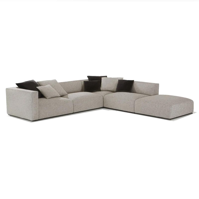The Poliform Shanghai collection was born from the vision of Carlo Colombo. A 2006 project that is still relevant today, thus revealing its timeless nature. Shanghai is characterized by padded geometric shapes and an aluminum base: a linear feature that becomes a discreet detail. Shangai is proposed here in the modular version with various configurations.