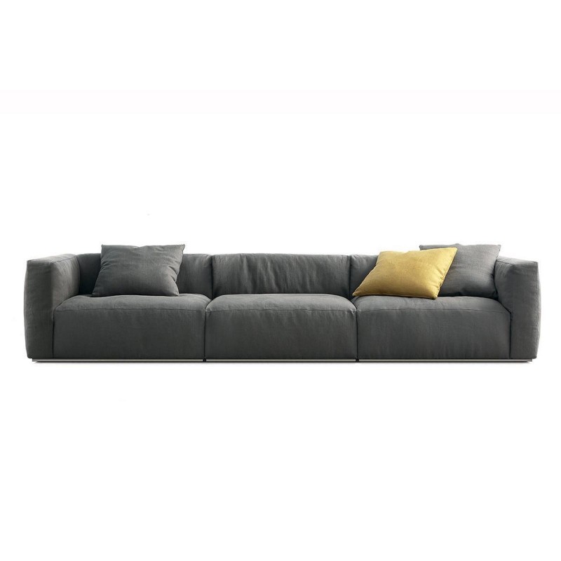 The Poliform Shanghai collection was born from the vision of Carlo Colombo. A 2006 project that is still relevant today, thus revealing its timeless nature. Shanghai is characterized by padded geometric shapes and an aluminum base: a linear feature that becomes a discreet detail. Shangai is proposed here in the linear version with three dimensions.