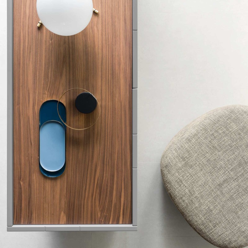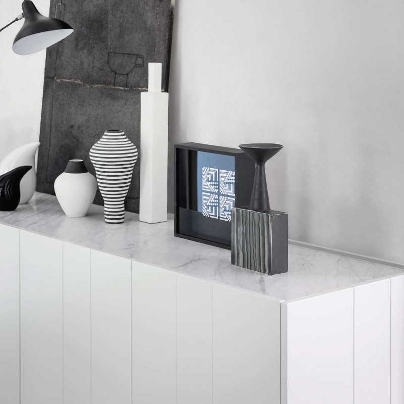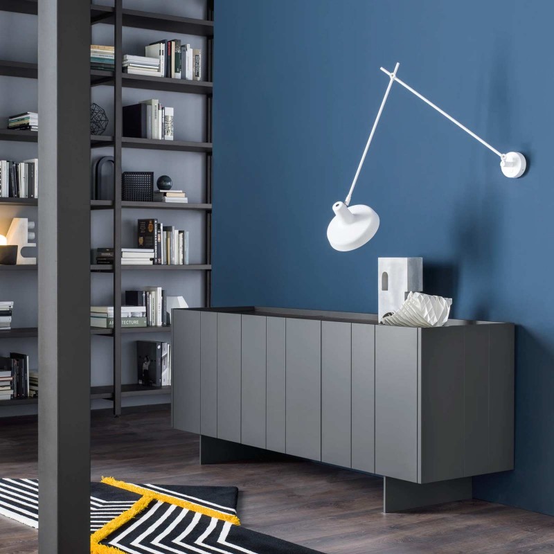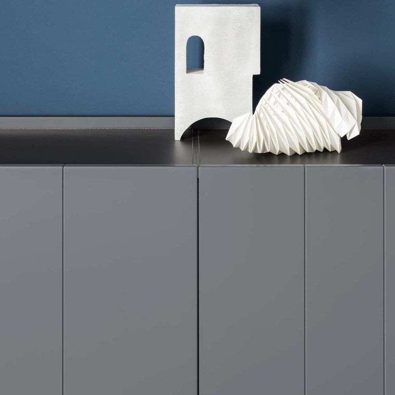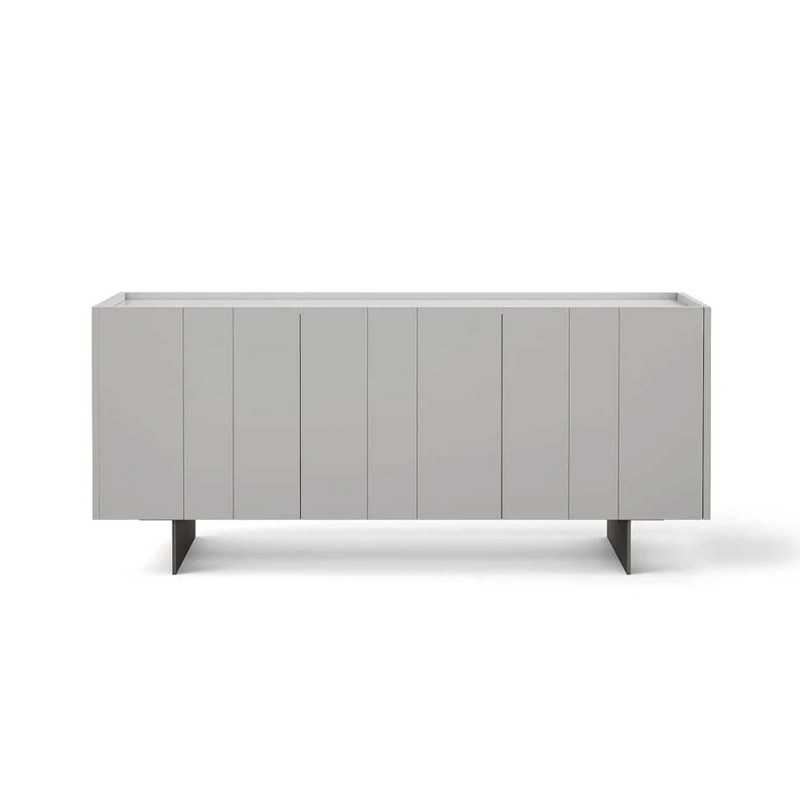 The Stripe sideboard by Novamobili is a storage unit with simple geometric lines whose name evokes precisely the idea of stripes thanks to the succession of vertical front lines that create an elegant rhythm. The protrusion of the doors from the top allows them to be opened. In this version it is offered in 168 cm width, but it is also available from 222.8 cm.