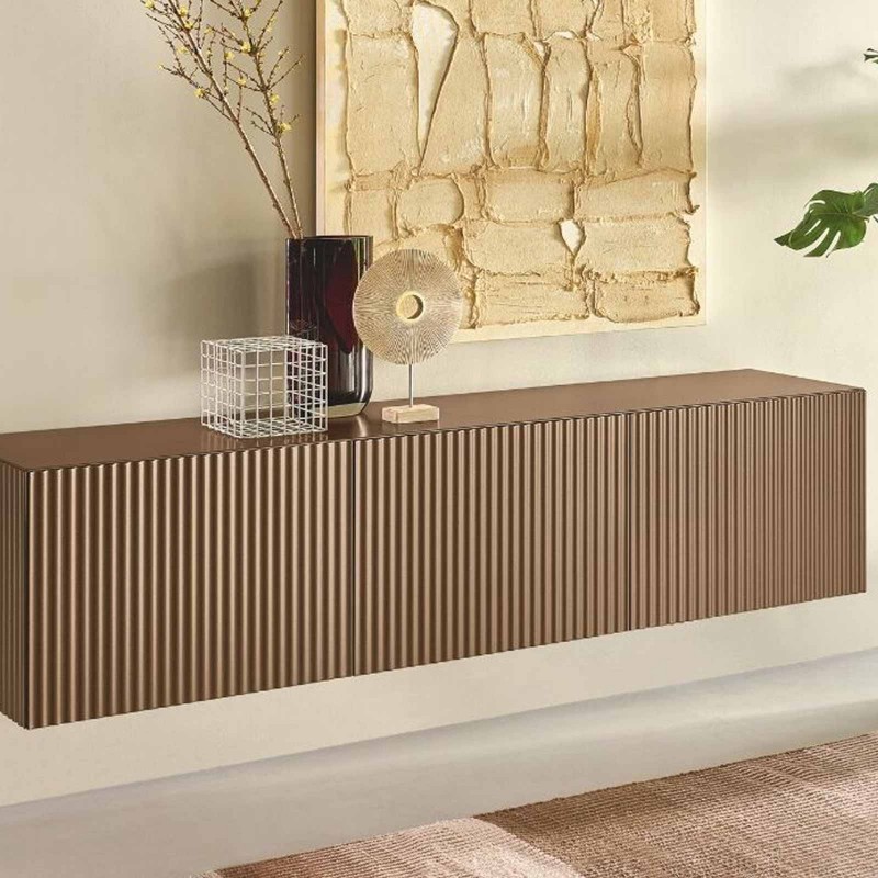 Riflessi's Onda sideboard with its canneted pattern evolves with the new suspended version: the result is lighter, yet its sculptural soul remains preserved, given by the play of solids and voids created by the vertical decorative incisions.
