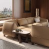 - Upholstery available in Pelle Frau® leather or removable fabric, enhanced with stitching along the edges and on the surface.