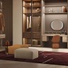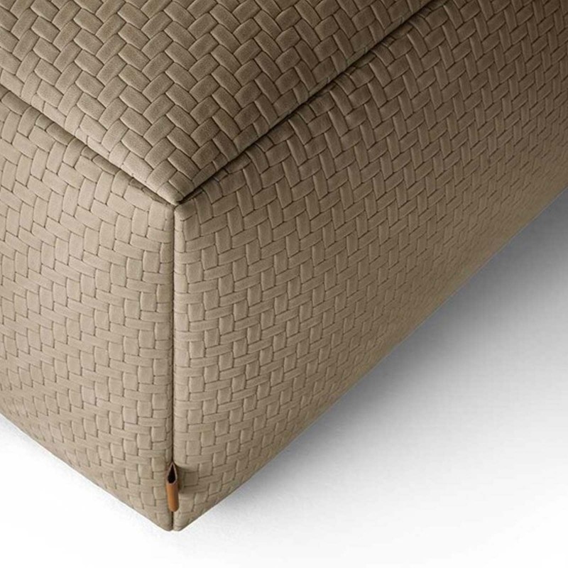 The Kubaya collection by Poltrona Frau features elegant, large-scale upholstered poufs in cube or rectangular shapes, ideal for complementing the living area alongside spacious, corner sofas, as a seating area within a walk-in closet, or as an upholstered bench at the foot of the bed. The forms are clean-lined, yet appear visually softened thanks to the generous padding and rounded corners. The lines of the forms are emphasized by the joints, which result from the seamless joining of the upholstered panels.