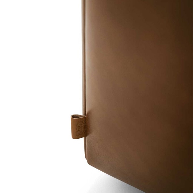 The base of the Kubaya poufs is available in different configurations, while the Poltrona Frau® logo is hot-stamped on a leather tab positioned on the lower side.