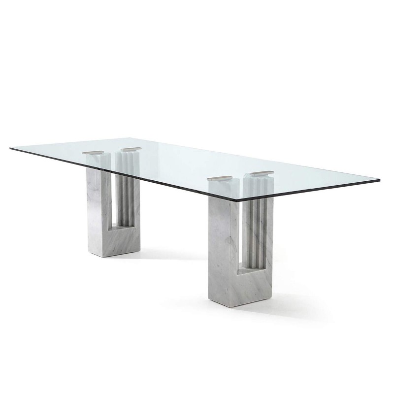 Delfi is the table reissued by Cassina as part of the Ultrarazionale collection launched in 1968, consisting of sculptural pieces created by Carlo Scarpa with extreme attention to detail, workmanship, and material selection. The table is a redesign of a rationalist model created by Marcel Bauer in the 1930s for Dino Gavina's home in Bologna. At the end of the 1960s, Scarpa began to reevaluate the original design, making some changes in consultation with the author. Later, in 2009, Tobia Scarpa proposed a new variant with a glass top that revealed the refined brass supports and the grooves in the marble bases, highlighting the elegance of the forms.