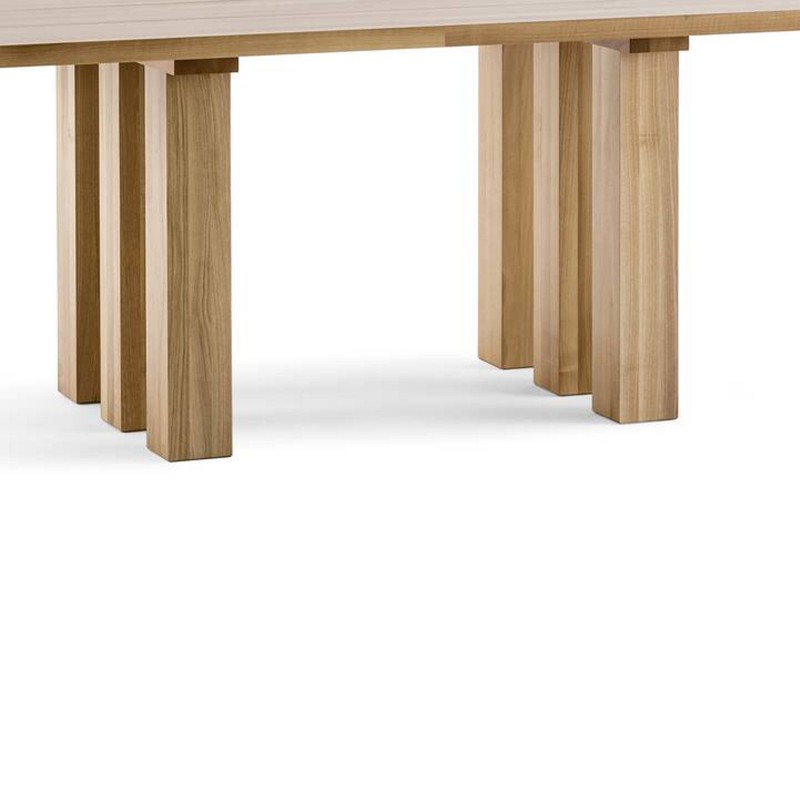 Cassina's 451 La Basilica table is a design by Mario Bellini from the 1970s. As its name suggests, the table is a monumental piece of exemplary architectural construction that, along with other tables including La Rotonda, La Corte, Il Colonnato, and La Loggia, celebrates the primary structures of architectural history “converted” into a system of furniture solutions that embrace every need. Also reflected in this interweaving of architecture, design, and furniture is Cassina's cabinet-making mastery, visible here in the base of La Basilica: six legs or eight legs as pillars. The top is composed of slats with the same width as the supports.
