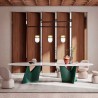 Following the success of the limited-edition, numbered Infinito table and the Infinitamente table, Roberto Lazzeroni has designed Infinitamente 2.0 for Poltrona Frau: a large dining table that seats up to twelve people. Measuring 320 cm in length, Infinitamente 2.0 is characterized by its staggered double-oval shape; a design detail that conceals a deeper meaning, evoking the complementary forms of yin and yang, symbols of infinite completeness and prosperity.