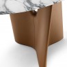 The tabletop is made of marble and available in various glossy or semi-glossy finishes; the base consists of two helical legs upholstered in Pelle Frau®.