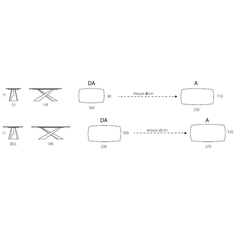 Living is a family of tables by Riflessi, glamorous and with a great presence. To support the precious top, two asymmetrical legs overlap at an angle; their interweaving makes the table unique and sophisticated. Living is available with a ceramic, fixed or extendable wooden or crystal top.