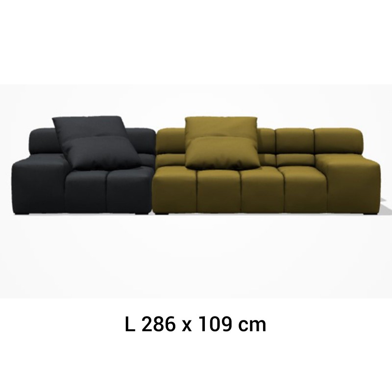 Tufty Time is the sofa designed by Patricia Urquiola for B&B Italia, one of the most famous upholstered items of the brand. Keywords of Tufty Time are modularity, removable cover and comfort. From a series of modules different in size and elements, terminal, central or corner with low or high armrest, surprising solutions of linear sofa or with chaise longue are born. Tufty Time is a modern reference to the classic capitonné. A piece already in the Olympus of design.