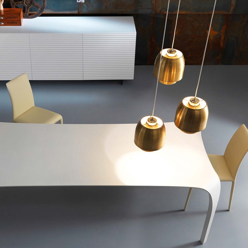 Unico is the table with a technological soul of the Riflessi table family. Made exclusively in Tecnoril, an avant-garde material with technical performances such as practicality, hygiene and resistance, Unico has a fluid silhouette thanks to the absence of joints. A monolithic piece with a minimal aesthetic capable of giving a tech tone to even the most classic environments.