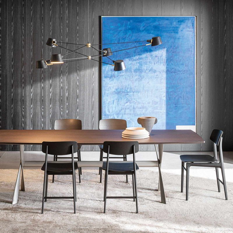 Gatwick is not only the name of the busiest airports in the world, but it is also the name of the table designed by Rodolfo Dordoni. Just as the London space welcomes travelers at any time of day or night, Gatwick by Molteni & C gathers everyone around a table for a convivial moment. Available in rectangular or oval shape, Gatwick is proposed in a satin pewter finish structure with top in a choice of eucalyptus, graphite oak and walnut.