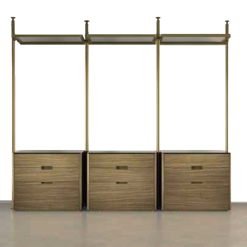 Hector Night is the evolution of Molteni & C's Hector bookcase dedicated to the sleeping area. An open and multitasking system capable of adapting to the most disparate space requirements, allowing the modules to be freely organized. Hector Night is a wall or ceiling walk-in closet, an expression of refinement and functionality, allowing you to keep your wardrobe flawlessly. The wide choice of finishes and compositions makes Hector Night highly customizable.