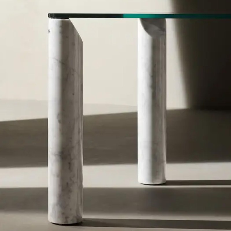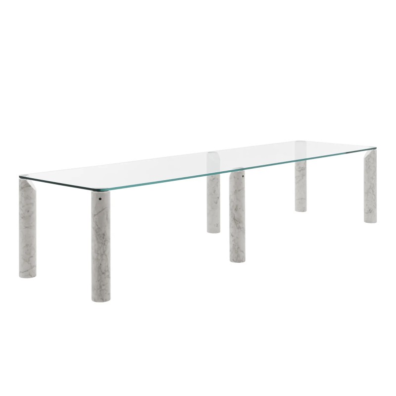 Isos is the new 2024 table by B&B Italia designed by Piero Lissoni. Lightness and formal research are the leitmotif of Isos, in which the cylindrical legs are characterized by an unusual detail: the chisel tip on the upper part, right where there is the connection with the top, obtained thanks to a steel plate. Isos is available with round, oval and rectangular top in various sizes. Here we propose Isos in the rectangular version with 6 legs positioned in an unusual way.